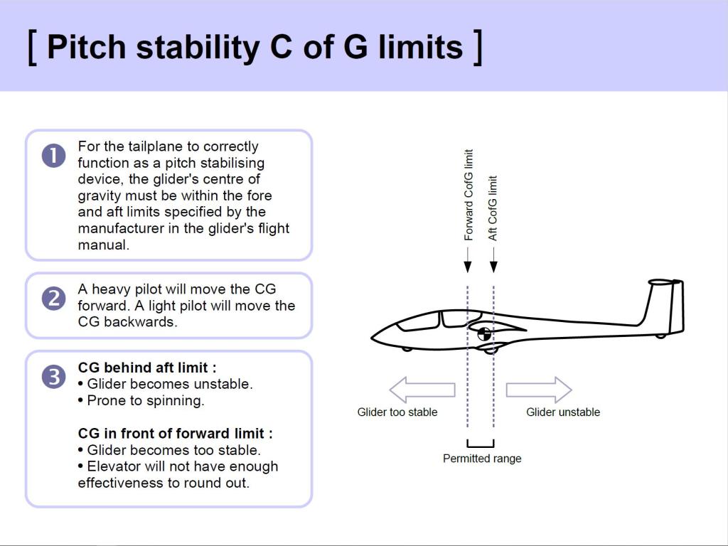 - Heavy Pilots move the CoG forwards: the glider may be unrecoverable from a dive.