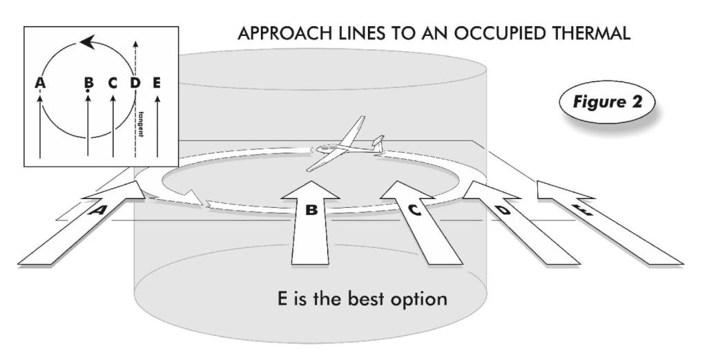 Why is E the best way to approach an occupied thermal? Assume the glider illustrated is already there.