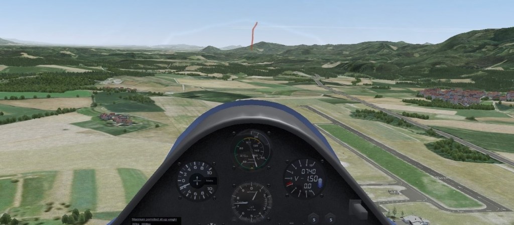 Whilst too close feels uncomfortable, too low feels worse. If only you could regain height somehow. Condor’s Q button doesn’t exist in the real world, and rather overdoes it in sim circuits, so it is better to adjust your position to match your height. Can you make it to a point in the ‘normal’ circuit at an appropriate height? If you are upwind and low, can you move your intended landing area to the upwind end of the field and fly a circuit appropriate to that? Or if very low, land downwind? If you are low and out to one side, could you dispense with ‘downwind’ and fly a long diagonal leg to join a normal base leg? Would it be better to adjust your intended landing area and make a smaller circuit, or turn in early? If you are low and the landing area is a little upwind of you, perhaps you could fly a long base leg to a ‘normal’ Final Turn position. Finding yourself low and well downwind of the field is dangerous – too often people try to stretch their glide, failing to plan for an early arrival somewhat short of the field. You may be able to fly straight in on a lengthy Approach leg, but only from a safe height. Consider an outlanding instead if you are low and downwind.