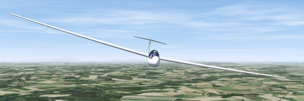 The ailerons are controlled by the sideways movement of the stick, and cause the glider to roll. Rolling will cause the glider to change direction, so before we roll, we must always lookout to avoid meeting another glider! This is a priority in real life, and remains important in Condor if you are flying with others.