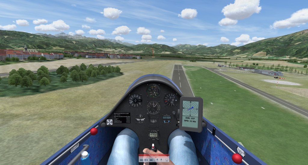 This demonstration and exercise takes place in a 10-20kt cross wind, at 90 degrees to our target. You’re flying the Standard Cirrus.
